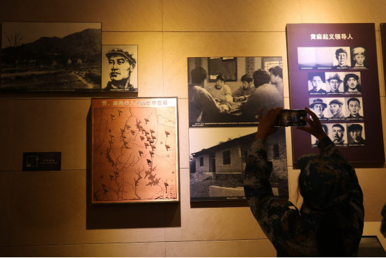 走遍展馆,边看边听着讲解员讲述革命斗争年代的故事,令不少前来参观的学生心潮澎湃。《黄麻惊雷》部分,以现代的声、光、电等形式重现了黄麻起义的战斗场景,铿锵的呐喊声、激烈的枪炮声,让当年那场战斗历历在目。先烈的革命事迹,英雄母亲送丈夫儿子上战场,数万群众为红军献粮献衣……一件件往事,激荡着人们的胸怀。