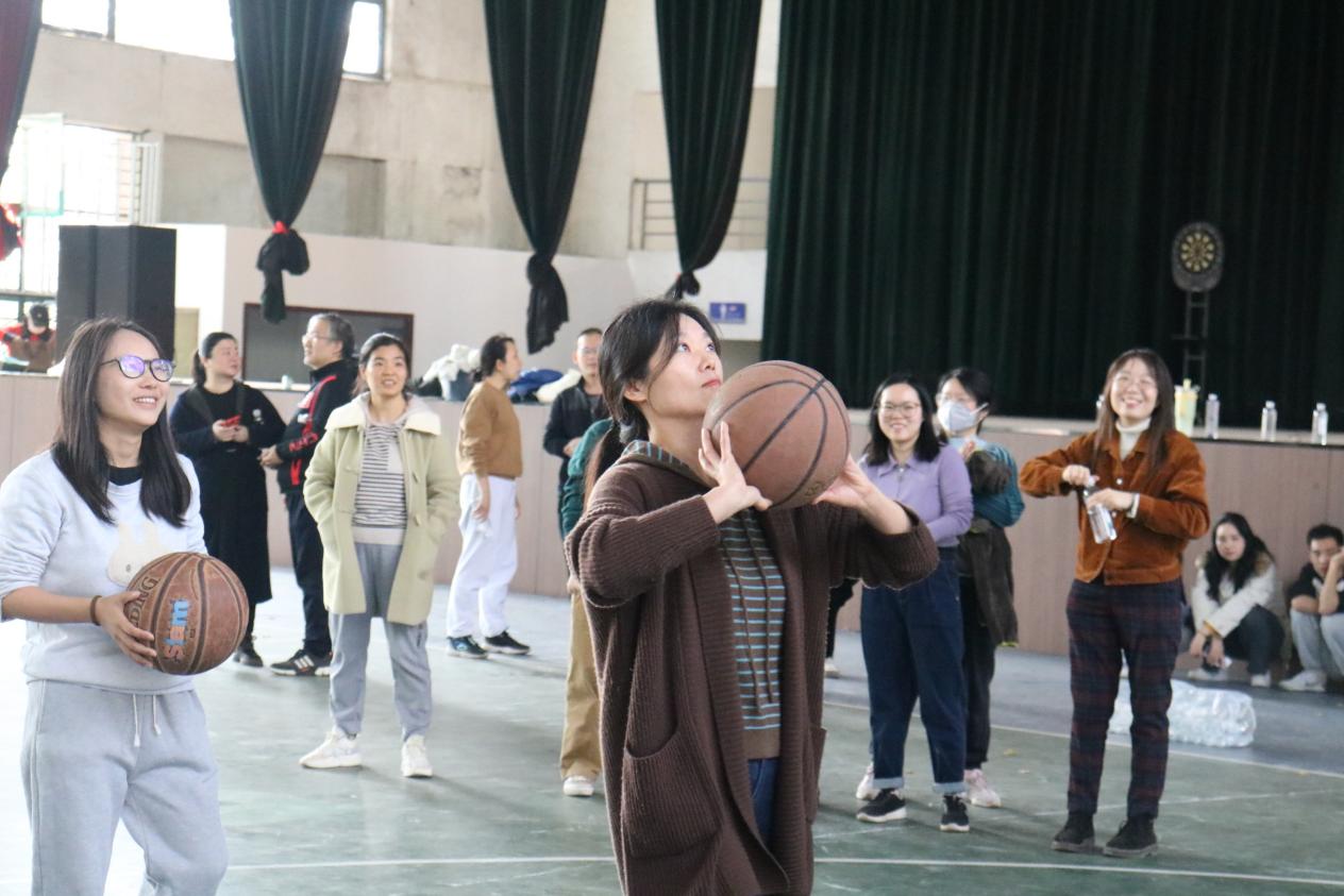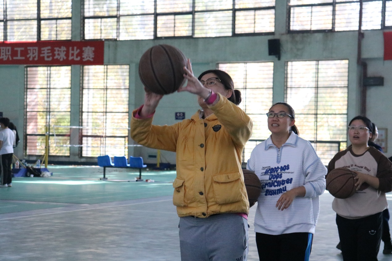 定点投篮接力是本次运动会赛程时间最长,竞争最为激烈的一场比赛,在紧张的比拼过程中,经验丰富的教师还通过动作示范、接发球要领讲解,分析比赛赛点形势等方式向青年教师传授经验,充分体现了老中青三代人发挥“传帮带”的优良传统。