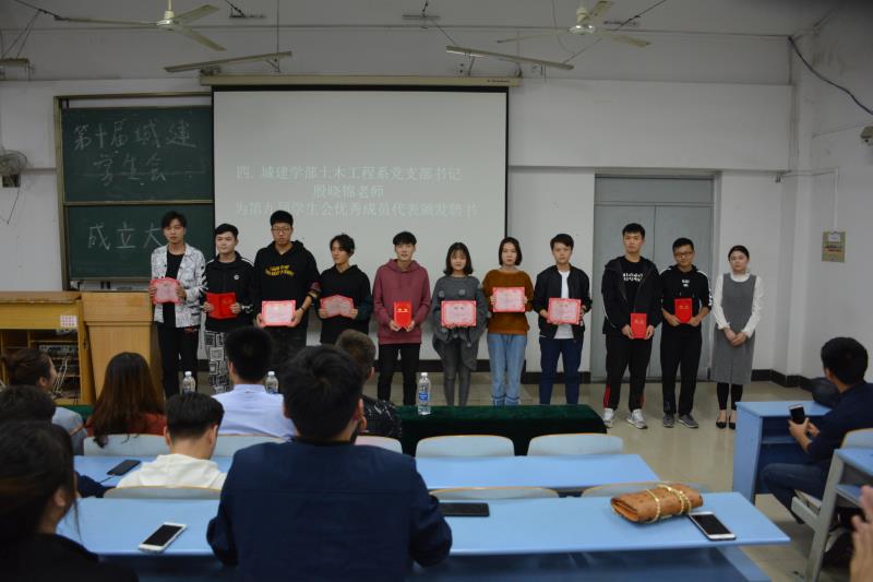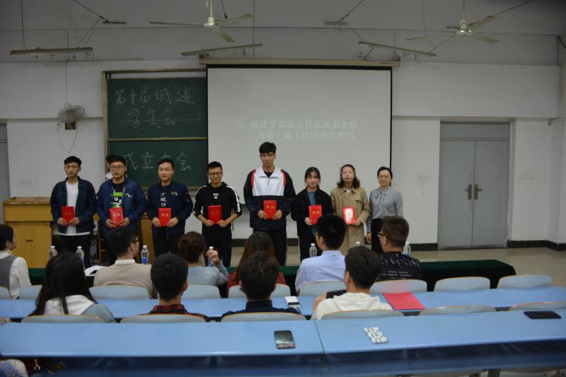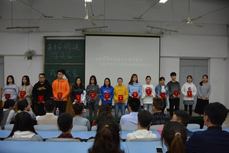 接下来学部分团委书记邓芳老师宣读了表彰文件与任命文件,为学生会优秀干部13人优秀成员10人颁发了荣誉证书。张凤老师为第十届主席团成员颁发聘书。