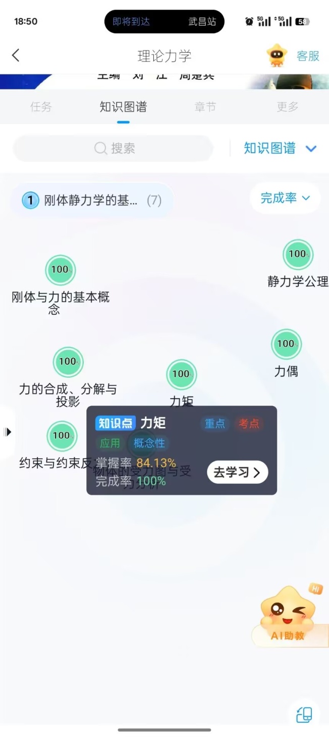 从牛顿力学到哈密顿原理,知识脉络如庖丁解牛般清晰呈现。"王晓琴教授团队依托超星学习通AI建模模块,将7章课程内容拆解为54个知识元点,通过语义网络生成多维知识图谱。系统自动标记重难点、考点,形成动态可视化的力学思维导航图。学生点击任意公式节点,即可触发关联知识点回溯与拓展例题推送,实现碎片化知识的体系化重构。