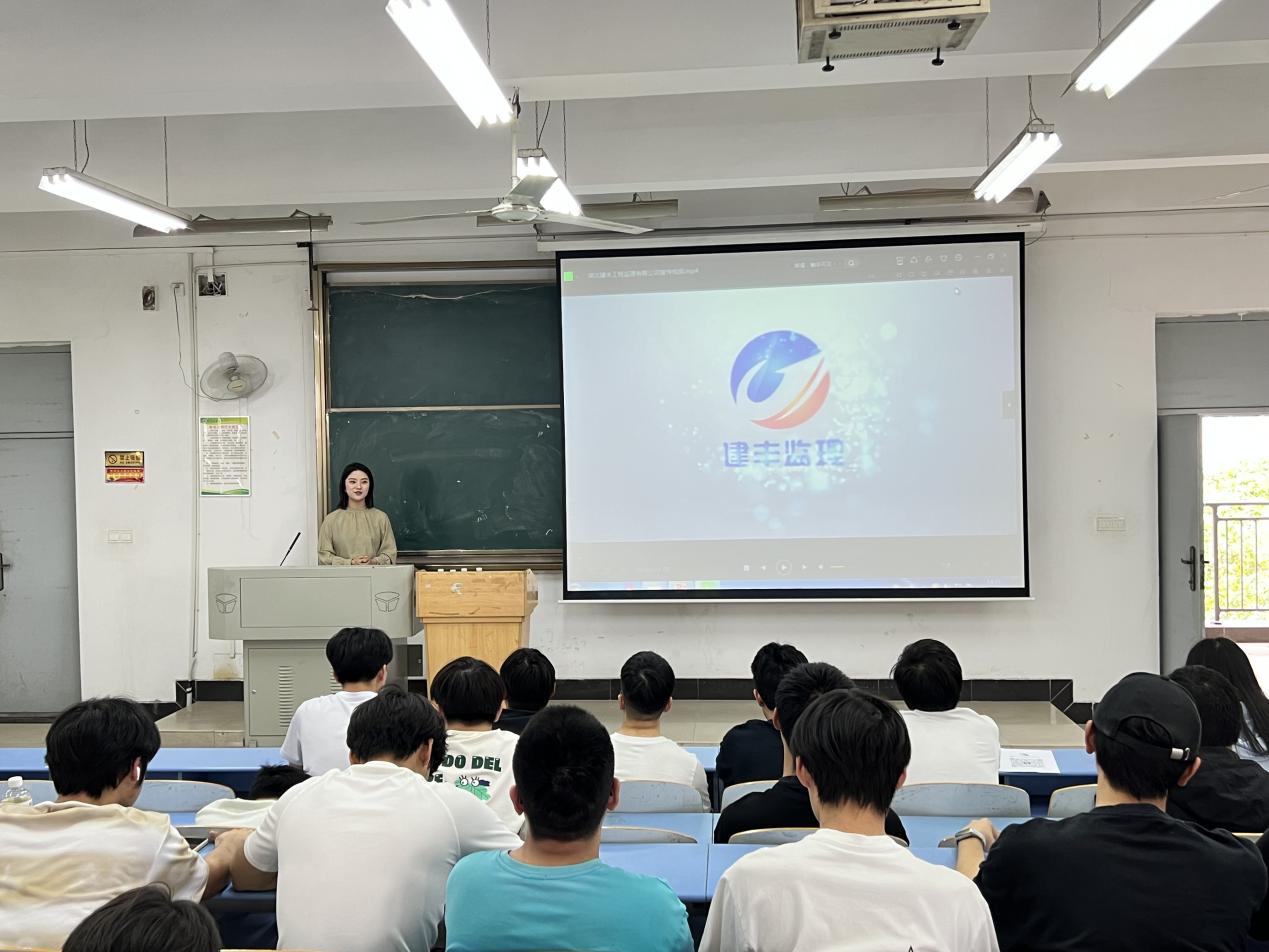 宣讲会上,建丰监理公司通过宣传片、PPT展示及互动问答,全面介绍了公司发展历程、业务领域及行业优势。她表示,作为国内监理企业,建丰深度参与多项湖北省重点基建项目,始终秉持"专业、责任、创新"理念,期待与城建学子共同推动城市建设的可持续发展。
