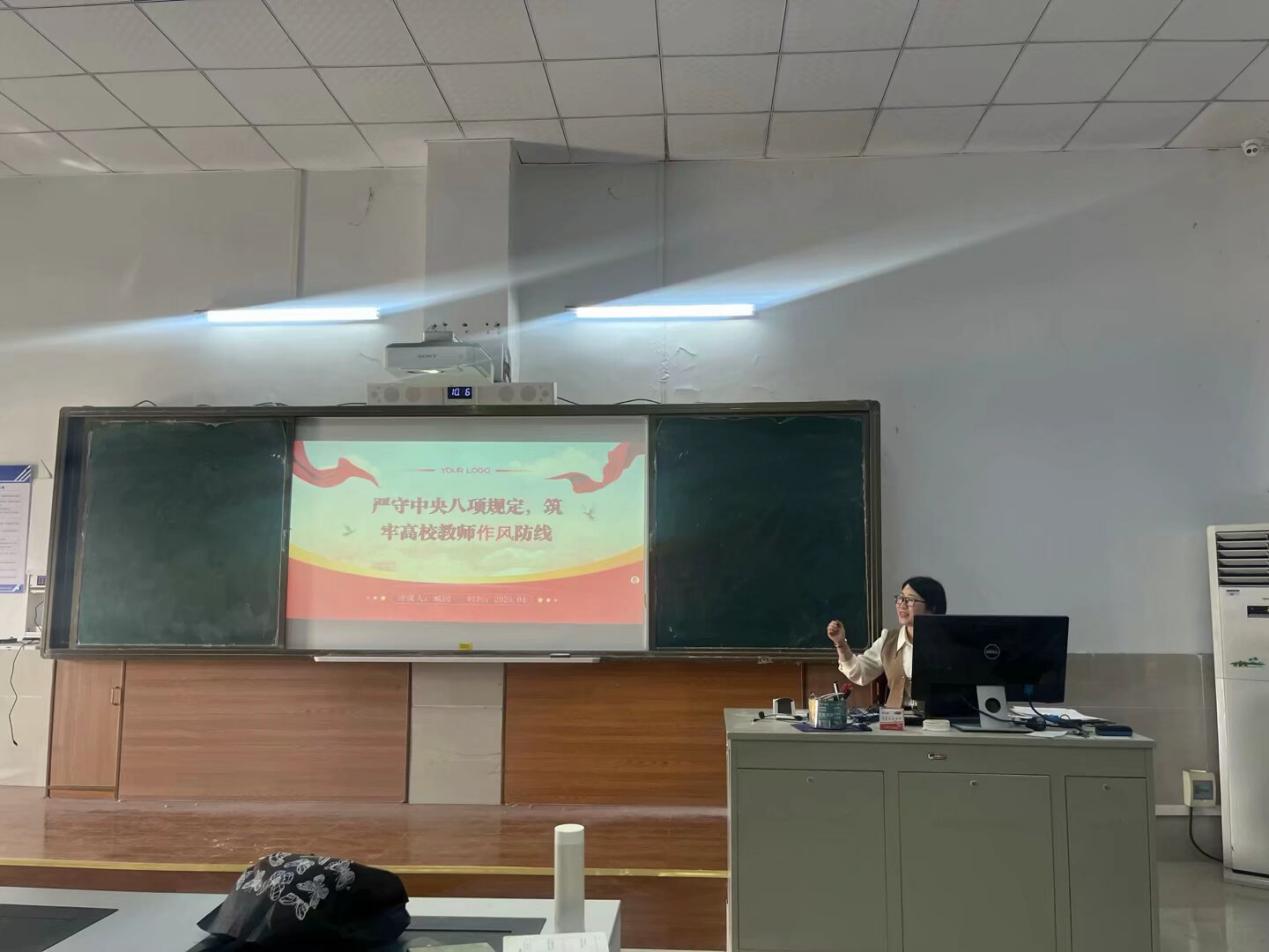 在党费收缴、重温誓词、诵读党章之后,支部书记臧园带领全体党员系统学习了中央八项规定及其实施细则精神,并讲题为《严守中央八项规定,筑牢高校教师作风防线》主题党课,她从中央八项规定的内涵解读、中央八项规定的重要意义以及高校教师党员如何践行八项规定三个方面,详细解读了精神的核心要义和实践要求,同时要求党员始终保持清醒认识,坚决抵制“四风”问题,推动作风建设常态化、长效化。