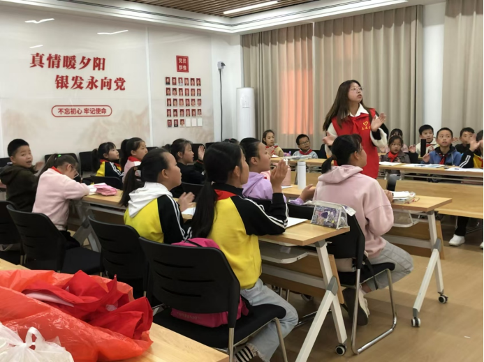 在课堂上,志愿者们不仅教小朋友们学唱歌曲,还向他们介绍了歌曲的创作背景、歌词含义以及所蕴含的红色精神。小朋友们被志愿者们的热情所感染,他们积极互动,踊跃提问,课堂氛围异常活跃。在志愿者们的耐心指导下,小朋友们逐渐掌握了歌曲的旋律和节奏,他们的歌声清脆悦耳,充满了童真和朝气。
