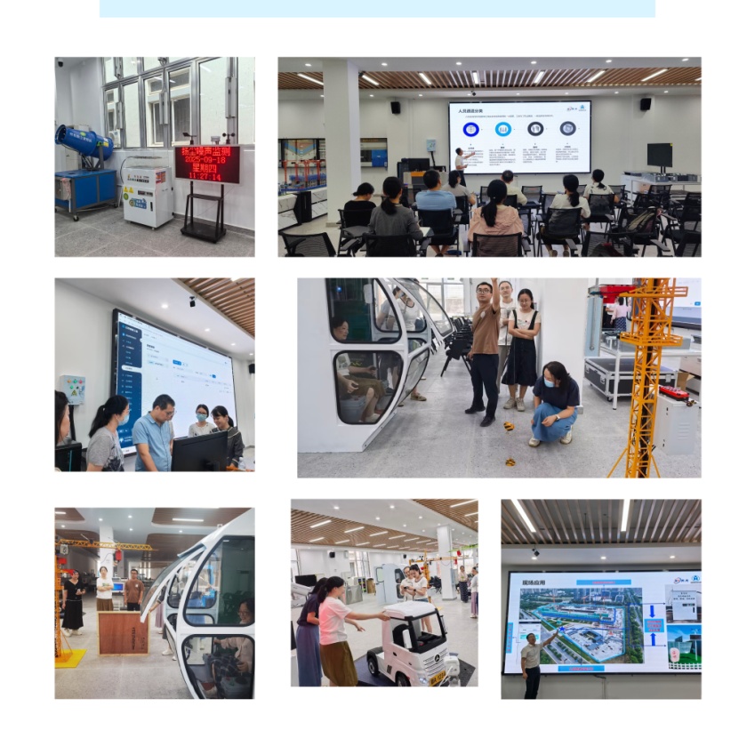 环境监测系统:通过现场设备演示与数据平台操作,教师们了解了传感器的布设方法、数据采集流程及超标预警处理机制,进一步拓展了智慧工地整体管控的教学视野。