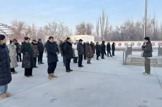 村里的每周一升旗仪式,是朱圣杰感受凝聚力的时刻。百余位村民准时到场,在庄严的国歌声中涵养爱国情怀,仪式上还会表彰先进、宣讲政策。而村里的民族团结活动更让他暖心:大家围着大锅一起做抓饭,羊肉的香气混着胡萝卜的甜味弥漫开来,维吾尔族、回族、汉族村民笑着聊着,不同民族的情谊在美食中悄然升温。“入户走访时,村民再忙都会拉你去院子里吃葡萄、喝茶,那份热情挡都挡不住。”