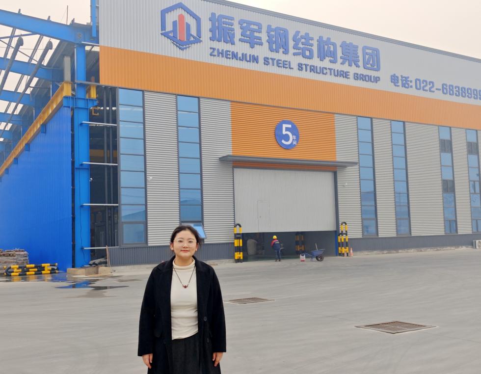 踏入振军钢结构集团后,彭若婷即刻投身于钢结构工程项目的规划配套工作中。专业学习中积累的实地考察调研经验,成为她开展工作的重要助力:在参与钢结构建筑项目的前期场地调研时,她能凭借过往调研中练就的现场勘测、数据采集能力,快速掌握场地的地形地貌、周边配套等实际情况,为规划图纸的调绘提供了精准的实地依据;同时,她结合城乡规划规范要求,对建筑体量、场地动线、消防间距等内容进行数据验算,确保方案既符合钢结构工程的技术标准,又契合城乡空间规划的整体要求。此外,她还运用PS绘制项目彩屏效果图,将钢结构建筑的设计理念与实地调研得出的场地特征相结合,让规划方案更贴合实际、更具落地性。