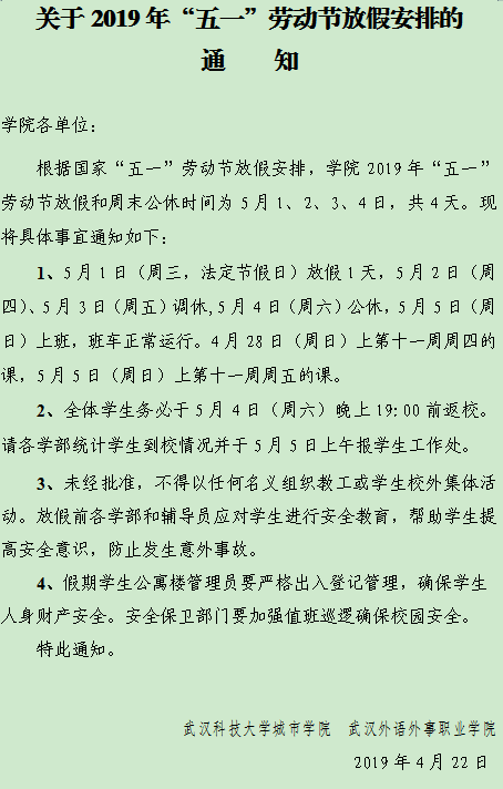 2019年劳动节放假通知