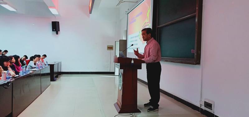 首先,教授向同学们讲到“人类命运共同体”的提出与内涵。他说自党的十八大报告提出“倡导人类命运共同体意识”以来,习近平在外交场合多次强调“人类命运共同体”,展现了中国负责任大国的形象,表达了中国追求和平发展的愿望。在重大国际事务面前,积极发挥建设性的引领作用。之后,他向同学们明确了人类命运共同体的内涵:“建设持久和平、普遍安全、共同繁荣、开放包容,清洁美丽的世界。”