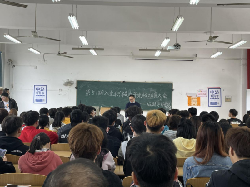 (党群在线讯)2021年4月22日中午12:10分,我学部新一批入党积极分子在南四教学楼4201教室举行第51期入党积极分子动员大会。城建学部党总支副书记汤轶老师出席本次大会并作出重要讲话。汤轶老师为入党积极分子讲解了入党之路:入党积极分子——拟发展对象——预备党员——正式党员。想要成为正式党员首先必须要有正确的思想认识,端正的学习态度和入党的坚定决心。在淘汰率较高的这一期更要严格要求自己,认真学习党课,提高自身思想觉悟,争取早日入党,为社会和国家做贡献。讲话表达了老师及学校党支部对第51期入党积极分子能够在党校学习中取得理想成绩的期许。