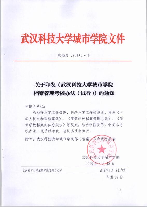 为加强学校档案工作规范管理,依据《武汉科技大学城市学院档案管理实施办法(试行)》(院档案〔2019〕2号),结合学院工作实际,特制定本办法。