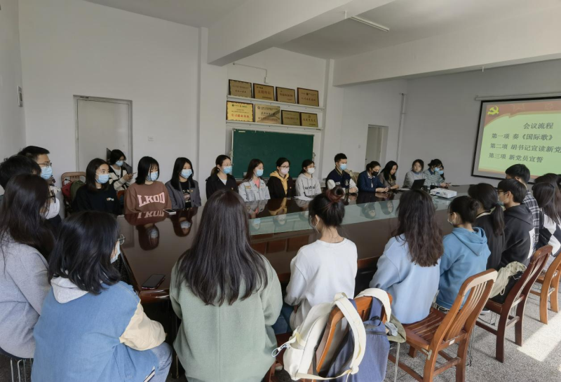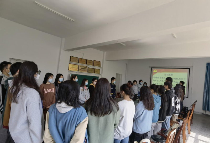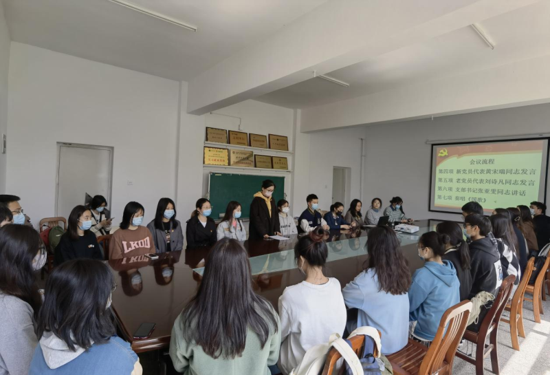 宣誓结束后,新党员代表黄宋瑞同志发言表决心:“能够成为一名中国共产党党员是光荣而幸运的,我们将以入党誓词为宗旨,严格要求自己,不断提升思想道德素养和政治觉悟。也将其作为自己终身的追求、实践和修养,用实际行动践行铮铮誓言,永远为党的事业与发展贡献出自己的力量”。随后,老党员代表刘诗凡同志发言表态度:“首先祝贺和欢迎各位新党员积极融入中国共产党的大集体里。同时,成为一名党员,并不能单纯的将其视以一份荣耀,而是我们每个人的身上又多了一份沉重责任与使命。在新责任与使命面前,我们更应该从言行举止上、实际行动中不断严格约束自己。努力学习专业文化课的同时,不断拓展眼界和胸怀,争做新时代的优秀青年党员,真正实现‘请党放心,强国有我’的庄严承诺。”