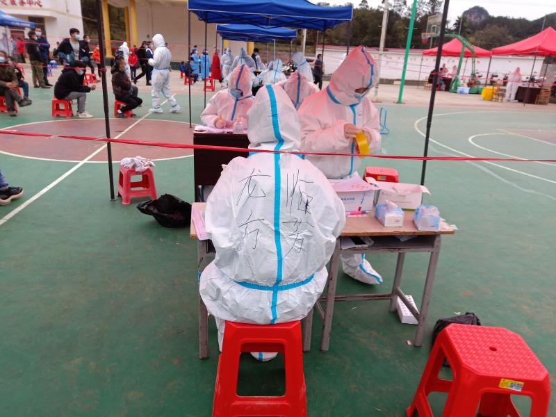 来自21级电商2班的方芳同学,在寒假期间,在家乡广西壮族自治区百色市靖西市龙临镇龙临街开展志愿服务,帮助布置工作现场、对民众的信息进行采集、维持现场秩序等等。她说:“当责任扛在自己肩上的时候,就要努力去完成好。作为大学生,我们要珍惜在学校的这段时光,我们在大学里学习的机会只有一次,我们需要依靠学校这个平台与资源去提升我们自己,提高自己的核心竞争力。”没有一个冬天无法逾越,没有一个春天不会到来,我们定会乘风破浪,渡过疫情春寒!
