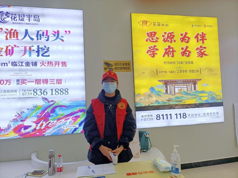 来自21级电商2班的戴谋萱同学,在寒假期间,她报名成为了一名家乡志愿者,前往商场人流量密集的场所,对商场进出的所有人员开展检查体温、健康码、行程码等工作。虽然任务很简单,但却需要维持长达六个小时的站立。她说道:“我尽我所能,只希望通过我的做法,来告诉更多的人,我们一定可以战胜疫情,一定可以看到日后的彩虹!”她义无反顾,勇往直前,以无畏的精神打造抗疫的最强利器,在抗疫之路上留下一朵灿烂的奉献之花。