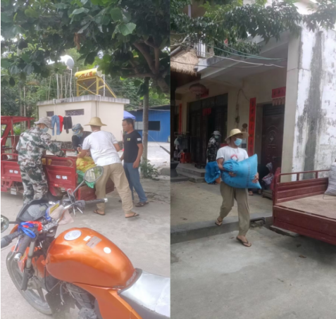 王李培同学表示,每天晚上22:00左右会在工作群收到村委会干部发布的工作任务,第二天早晨6:00起床,6:30所有志愿者在村口集合完毕,7:00准时组织村民们排队的同时给村民提供消毒用品,维持好核酸队伍的秩序。偶尔碰到村里老人不会操作手机时,也会及时提供技术支援。10:00核酸检测结束后,志愿者会分成几个小组,分别负责各家各户物资采购登记,一直忙到上午十二点多。中午短暂吃饭休息后,差不多下午两点开始,帮助有需要的村民把家里的稻谷搬运到指点位置碾好,于四点开始装车将白白的大米送回给各户村民。下午六点开始会将村委会集中采购的物资分发给村民们。这便是王李培同学每天的工作内容,经常服务时长超过8小时,不仅要经受住高温天气,更要克服心理和身体双重的考验,但是值得称赞的是,王李培同学不但坚持下来,而且还做得非常出色,从不抱怨辛苦,一直坚守在家乡防疫一线。