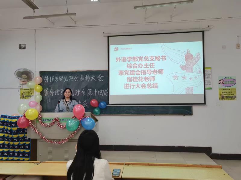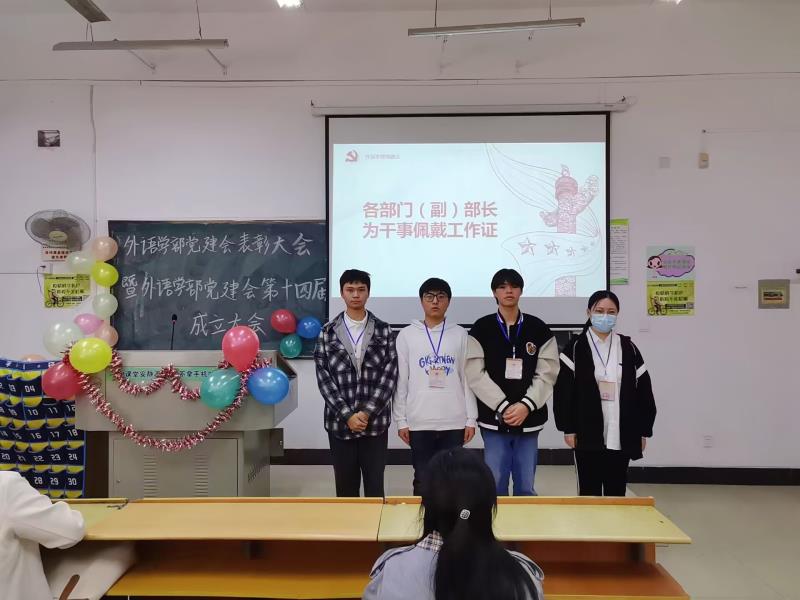 (外语党建迅 撰稿人:李明雨)十月,秋悄然而至,藏着夏末的几分余温,片片秋叶起舞着希望,是时光的阑珊而过,也是名为“希望”与“热情”的种子再次播种。外语学部第十四届党建会于2022年10月10日12:20在南2103召开成立大会。外语学部党总支秘书、综合办主任兼党建会指导老师程桂花及第十四届党建会全体成员参加了本次大会。