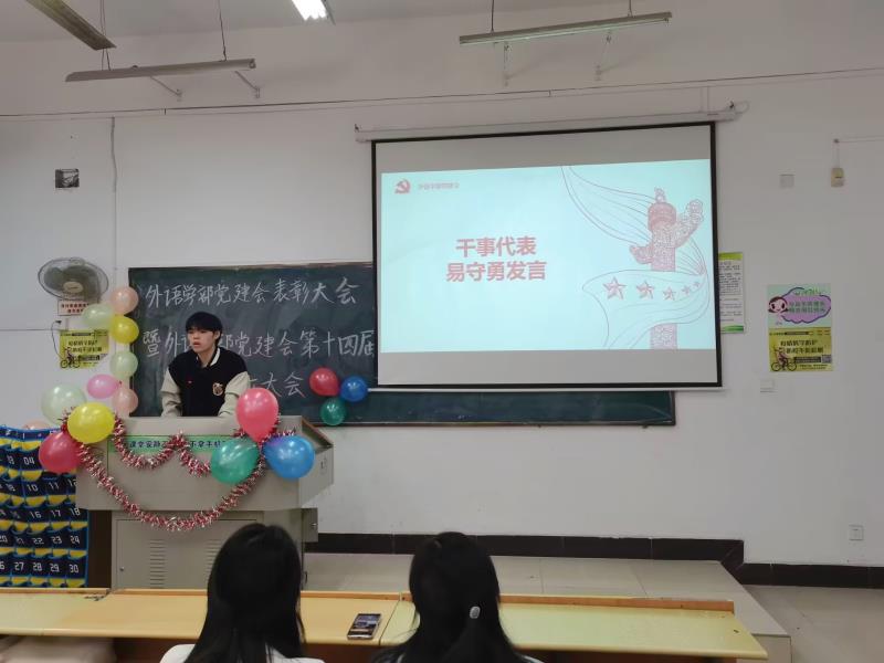 第三项,干事代表易守勇发言。他表达了自己加入党建会的决心,提出对未的期待与展望,体现出积极向上的工作精神与高昂斗志。