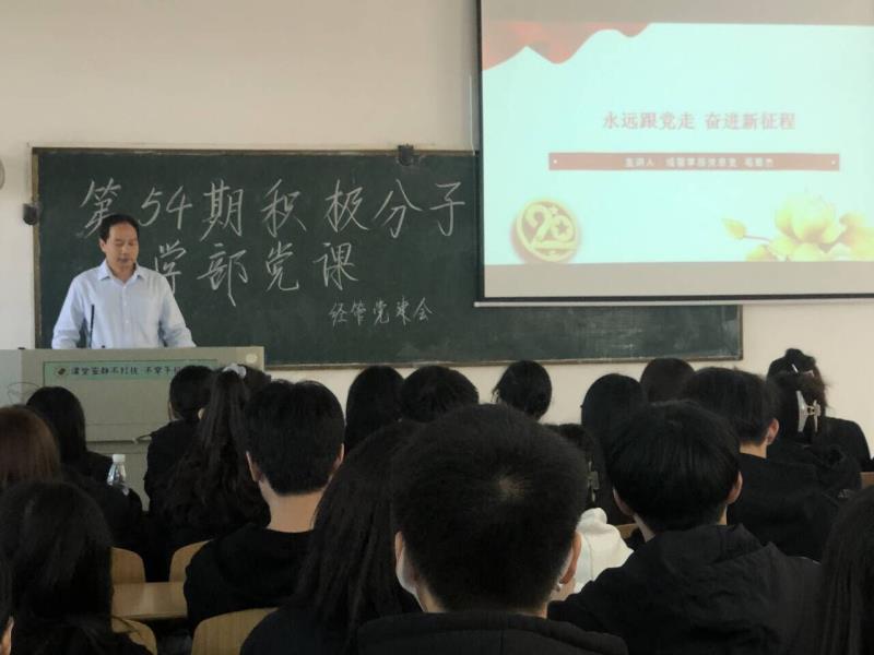(经管党建讯 记者王清)2022年11月03日中午12:00分,武汉城市学院经济与管理学部第54期入党积极分子党课学习于南4102顺利开展,本次学部党课由经管党支部副书记毛军杰主任主讲,彼时,所有积极分子准时到场参加学习。