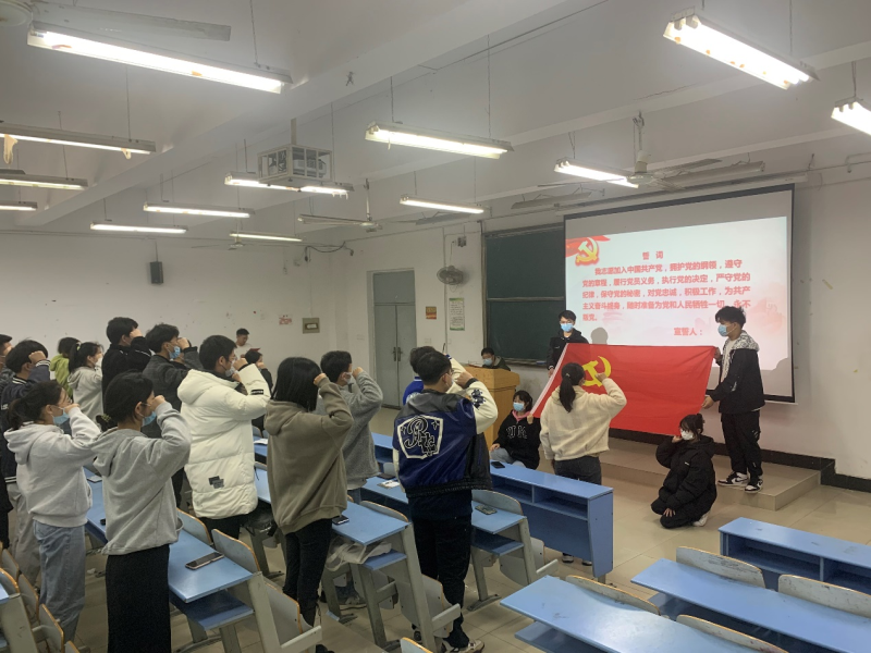 2022年11月15日中午,信息工程学部新党员的入党宣誓仪式在南教学楼6103隆重举行。各支部书记、总支秘书及新加入党组织的预备党员参加了仪式。