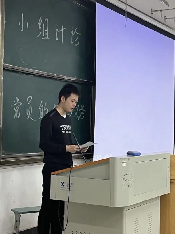 新闻网讯(记者:陆玥淇)明确一个党员的义务,就是明确衡量一个党员是否具有先进性的具体标准和尺度,2023年4月19日下午5:40我校便以“党员的权利与义务”为主题,在南6101教室进行积极分子讨论活动,以小组为单位派代表进行发言。