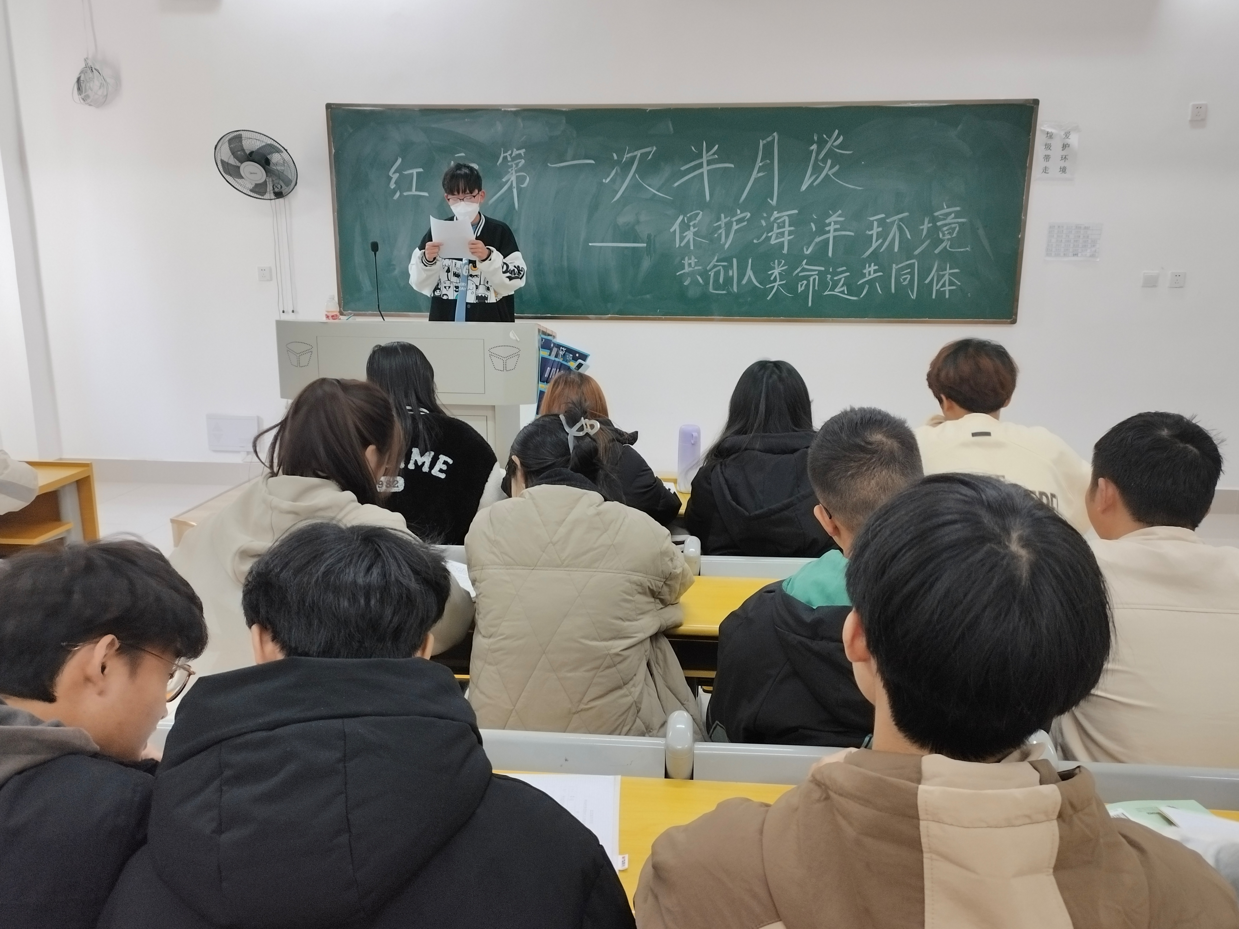 新闻网讯(通讯员:高琦 摄影:万瑞麟)2023年12月7号信工学部党建会红安校区于5-J219教室举办了一次主题为“保护海洋环境,共创人类命运共同体”的模拟党建半月谈活动,东湖校区同步观看直播。本次活动就如何做出贡献进行了深入讨论。
