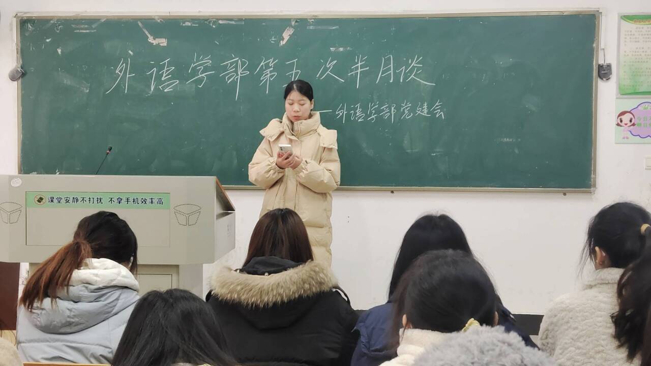 (外语学部建讯 撰稿人:崔明敏)外语学部党建会于2023年12月20日中午12:10在南3101教室举办了以“担当强国重任,做有为青年”为主题的第五次半月谈活动。我们恰逢一个充满机遇和挑战的时代,作为赓续中华精神的青年,当不负国家和民族的期望,勇担强国使命,做有志气的新青年。