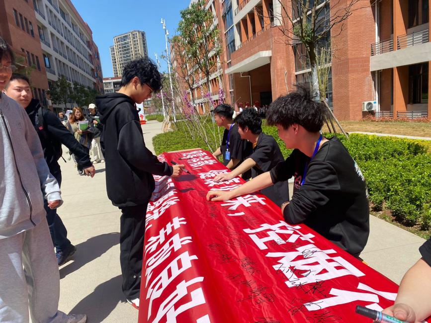 师生踊跃在条幅上签名,纷纷表示要从自身做起,拒绝烟草,劝阻身边人不吸烟,共同践行文明健康绿色环保的生活方式,共建共享无烟校园。活动现场氛围活跃,效果良好。