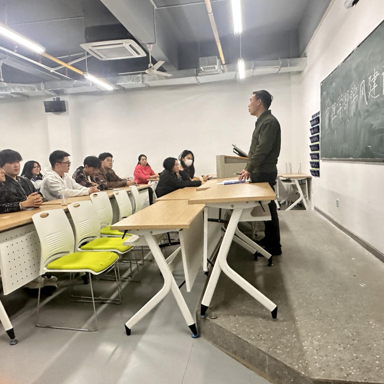 会议最后,李书记强调各班要加强活动的宣传和组织,各班委要切实负起责任,强化干部集体意识和奉献精神,提高站位,认真落实活动内容,通过抓活动,增强班风,提升学风。各班也要争先创优,开展学风评比活动,树立典型,建立学习竞争机制,为同学们营造风清气正的学风环境。