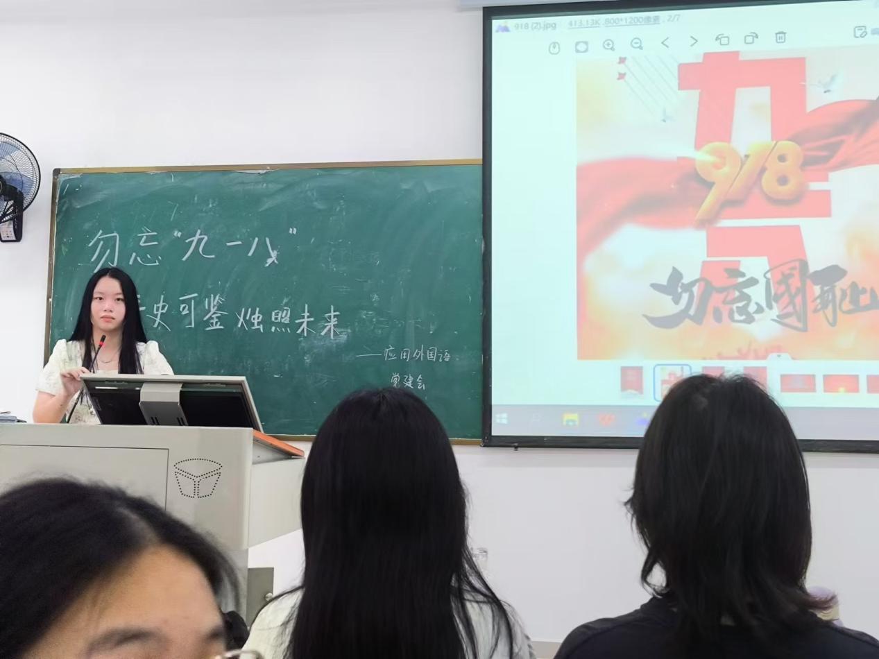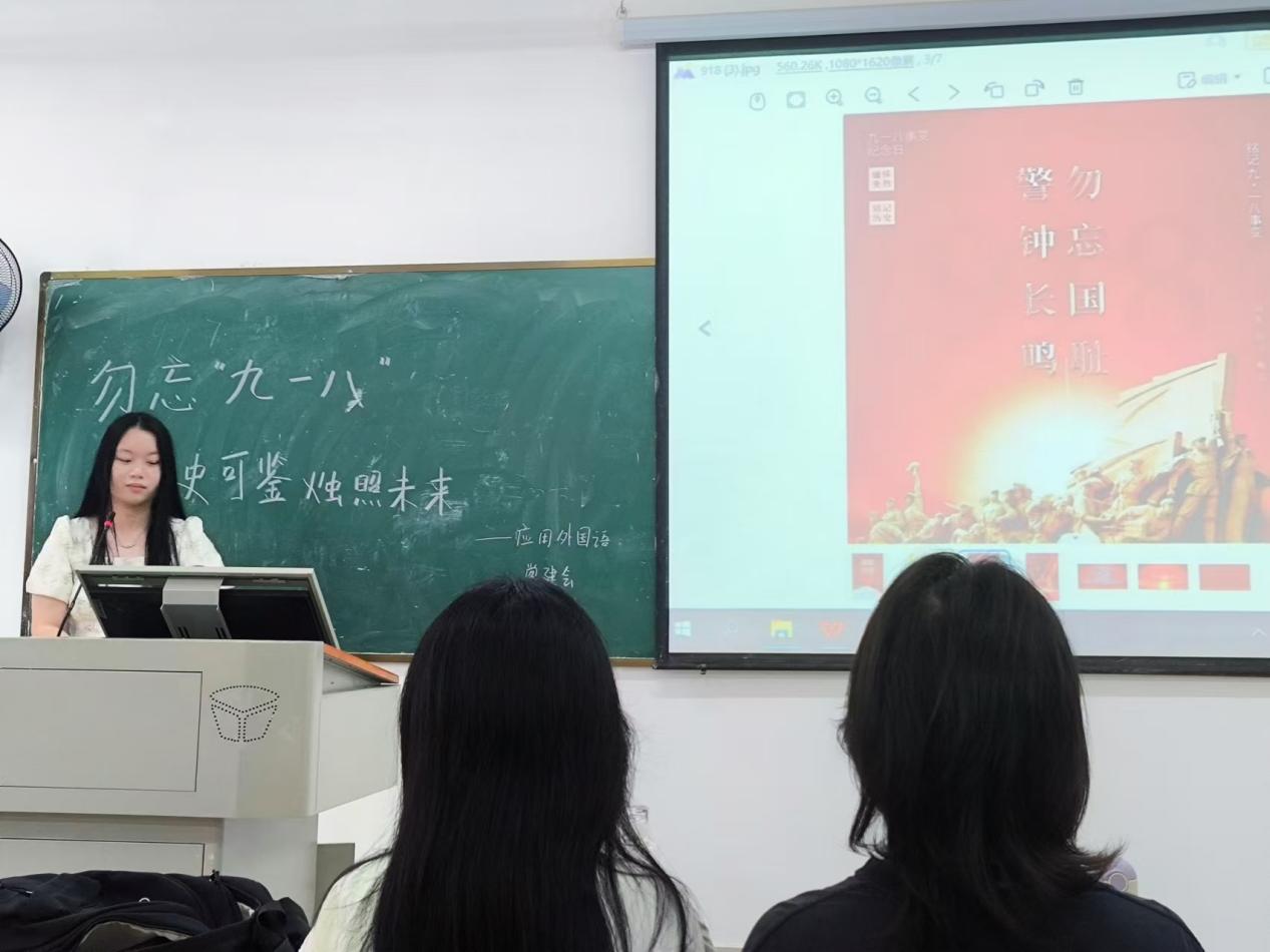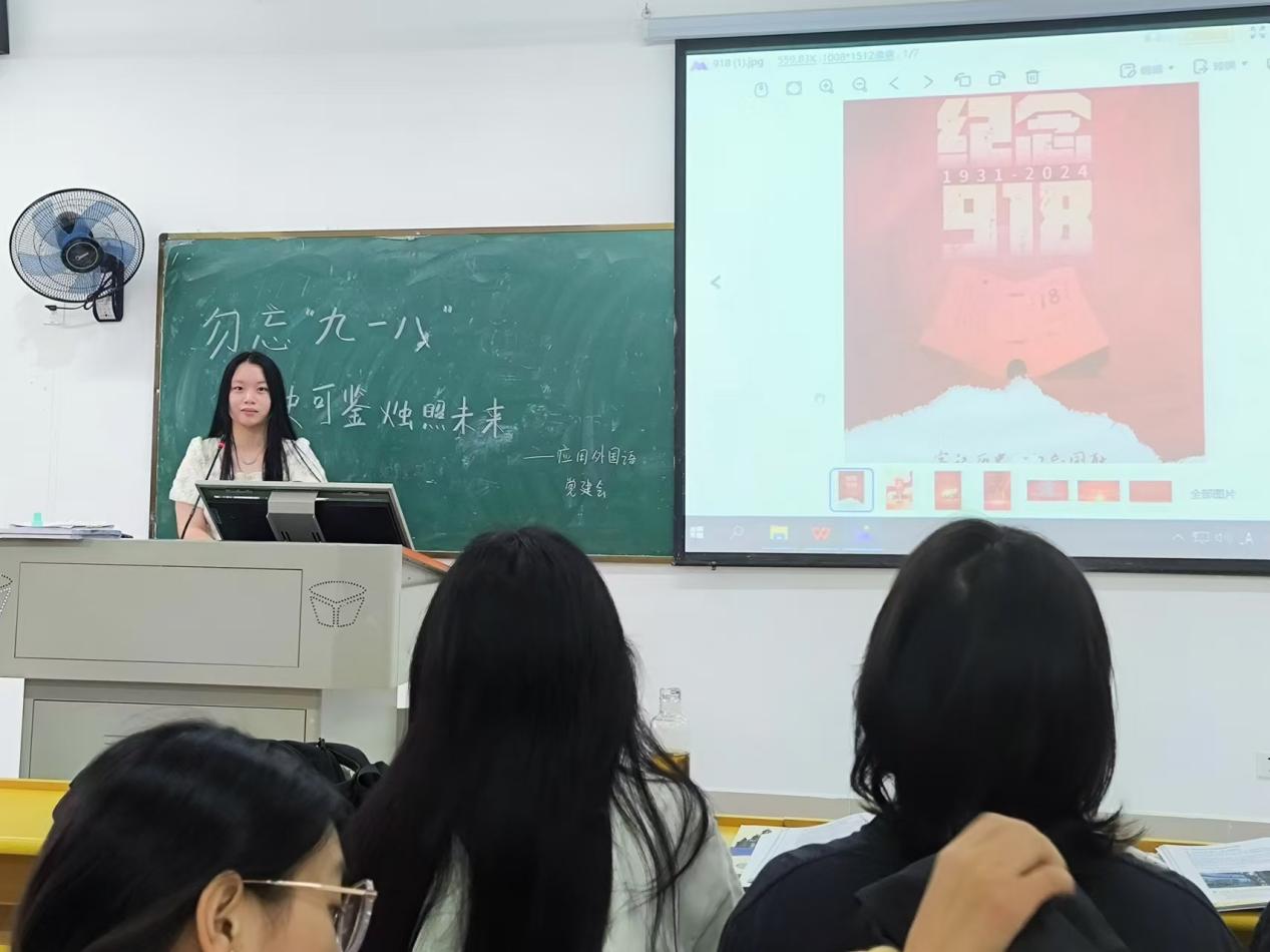 (应用外国语学部党建讯 撰稿人:胡彤彤)为了纪念九一八事变爆发93周年,庆祝新中国成立75周年,2024年9月18日早上8:00在藏龙岛校区J213教室组织了以“勿忘“九一八”青史可鉴烛照未来”为主题的分享活动。此次活动由学部党建会组织举办,全体党建会和团员参加,旨在回顾那段充满屈辱与抗争的历史,激发青少年的爱国情怀,警示后人勿忘国耻,奋发图强。