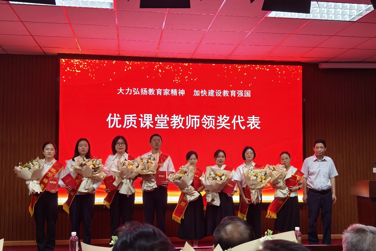 获奖老师们上台接受了荣誉证书和鲜花,他们的脸上洋溢着自豪和幸福的笑容。