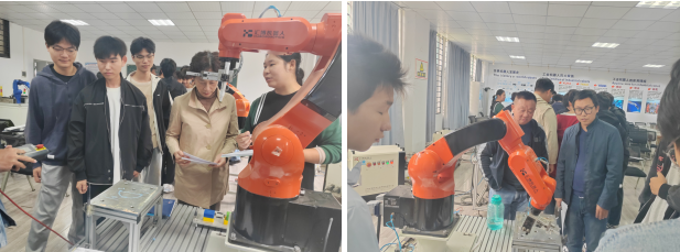 随后,在机电工程学部相关负责人的带领下,工程技术学部的老领导参观了机电工程学部的实验实训室。实训室里先进的设备和完善的管理给大家留下了深刻的印象。老师们仔细观察了实训室的布局、设备的配置和使用情况,了解了实训室的日常管理和维护机制。机电工程学部的实训指导教师还现场演示了一些设备的操作和教学方法,让工程技术学部的领导们更加直观地感受到了实训室在教学中的重要作用。