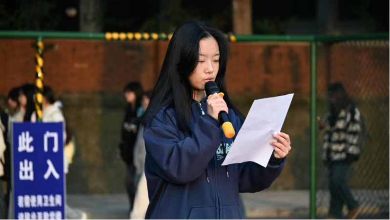 优秀学生代表邓枫婉发言:“青春更该有与国家同频的理想!”她结合成长经历分享蜕变:深耕学业获专业奖学金,组队参与学科竞赛提升协作能力,加入“红色画笔先锋队”赴乡村墙绘助力振兴、开展红色宣讲。她呼吁,爱国非空洞口号,需落实在课堂学习、竞赛拼搏、实践服务中,“愿我们用青春汗水逐梦,让祖国因拼搏更富强!