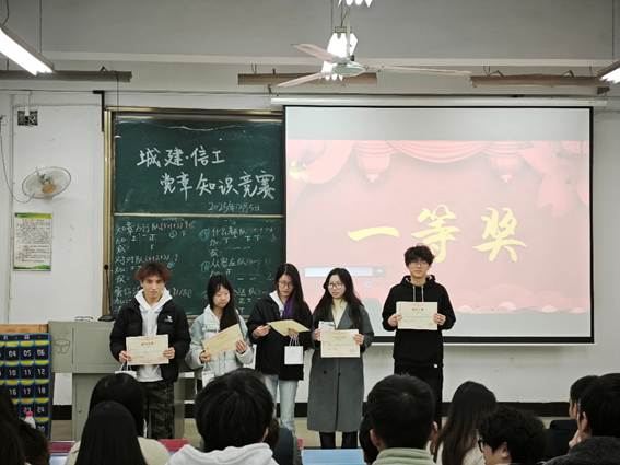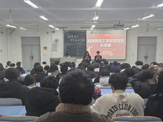 新闻网讯(通讯员 顾金妍 摄影 李冠霆)为深化党的创新理论学习、筑牢青年学子党性根基,12月5日12:15至13:45,城建暨信工学部于南6202教室举办党章知识竞赛。此次活动聚焦入党积极分子与发展对象的思想提升需要,以“以赛促学、以学践悟”为核心,通过理论比拼的形式推动党章党规党纪入脑入心。信工学部党总支副书记兼学部副主任王鹏老师、信工学部党总支委员汤轶老师、信工党建会指导老师彭雅丽老师、信工学部学生二支部支部书记尹可昕老师、信工学部学生四支部支部书记肖瀚钰老师、城建学部党建会指导老师高苗苗老师、城建学部学生第一党支部沈杨老师、城建学部学生第二党支部喻雅欣老师莅临此次活动,六支由积极分子、发展对象组成的学生队伍齐聚赛场,在知识竞答中用行动诠释信仰的力量。