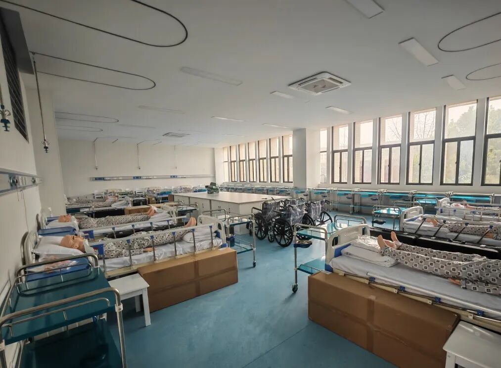 从晨光微熙到日头正盛,同学们相互配合,打扫、搬运、将器材归位。汗水浸湿衣衫,却无一人埋怨。最终,实验室三楼实现旧貌换新颜——走廊病房窗明几净,病床器材整齐规范。