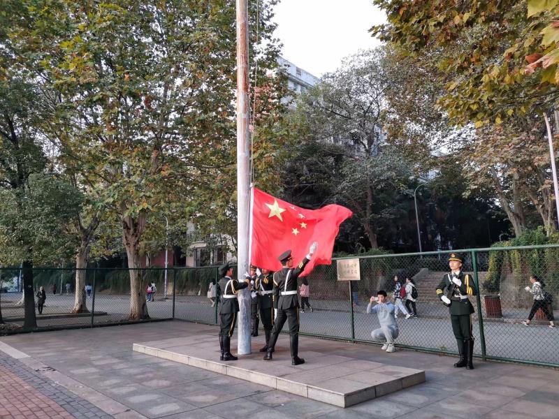 2019年11月11日早晨7时,学部在大操场上举行了升旗仪式。学部主任张凤秦老师、各年级组辅导员以及全体学生到场参加,由周莹同学担任主持人。
