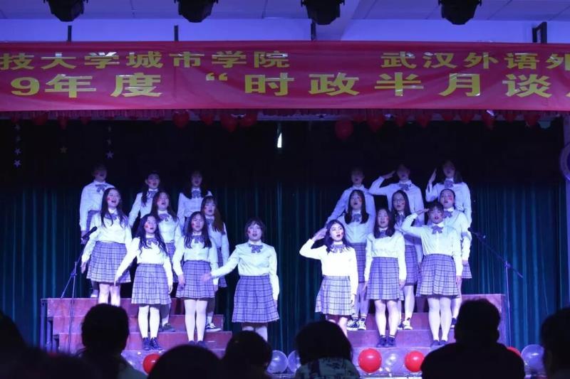 武汉科技大学城市学院,武汉外语外事职业学院2019年度“时政半月谈成果展”晚会于12月4日晚上6点30分在大学生活动中心顺利举行。校党委书记王军老师,党委组织部副部长关晓玲老师,组织监察科副科长吴丽波老师,经济与管理学部、城建学部、艺术学部等十二个学部的党总支副书记及党建会指导老师和会长出席了本次晚会,外语学部梁鸽、周雅乔老师参加了此次晚会。