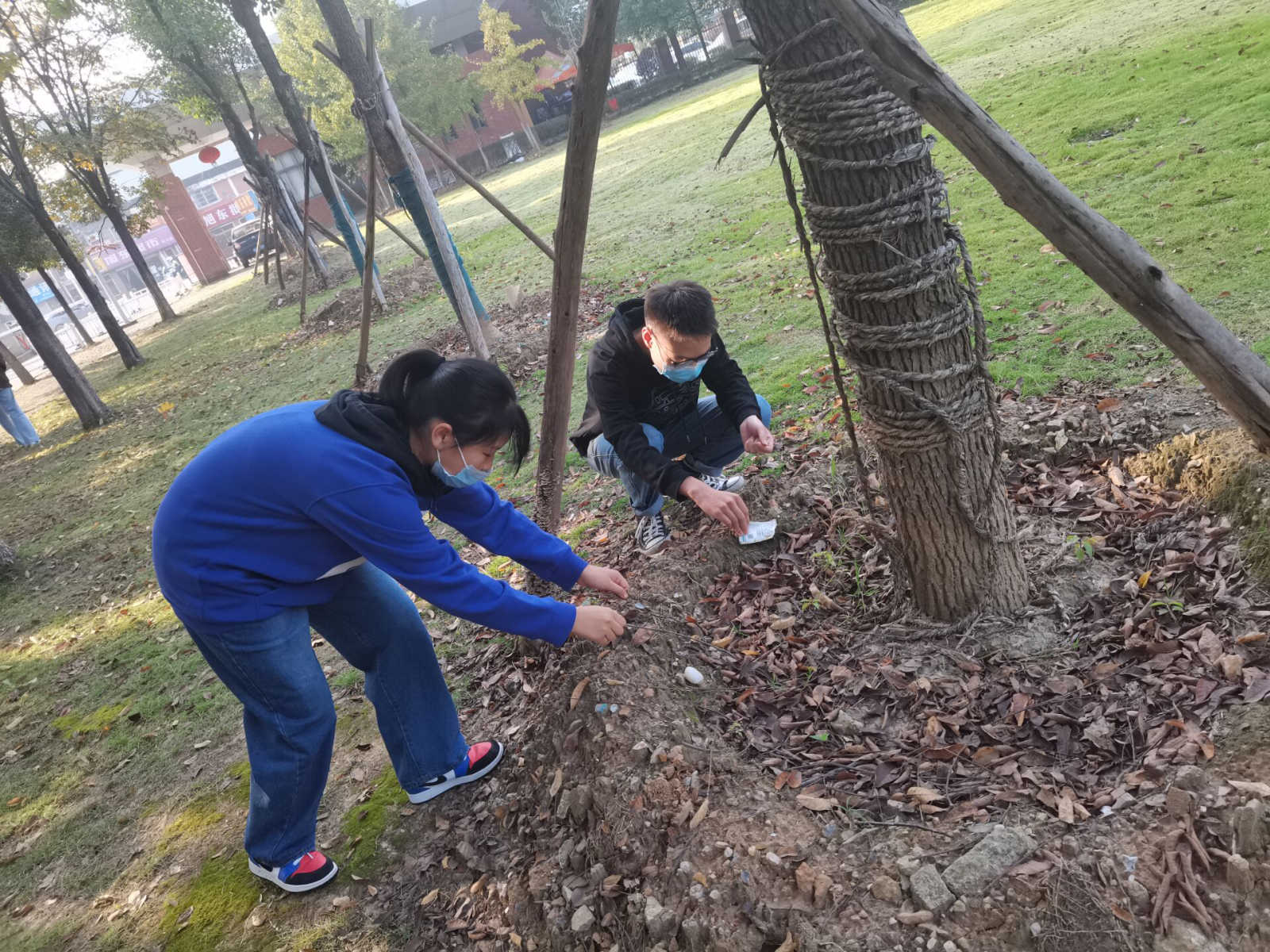 本次公益劳动主要针对学生们制造的垃圾和堆积的落叶等,清扫范围是南七教学楼至校门主干道附近的区域。活动开始前,刘纪英同学到学校后勤部门借来劳动工具,并分发给每位入党积极分子,拿到工具后,同生们秩序井然,三到四人分为一组,开始清理草坪上的落叶和过道上的垃圾。他们挽起袖子,仔细认真,不放过每一个角落,秉承着不怕苦,不怕累的精神,在阵阵的微风中,他们把自己负责的区域打扫得干干净净。在大家的共同努力之下,这片大区域焕然一新,让人赏心悦目。