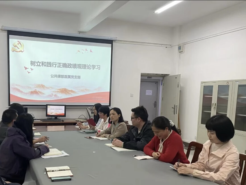 为深入学习贯彻习近平总书记关于树立和践行正确政绩观的重要论述,切实加强党员教师思想政治建设,引导全体党员端正育人理念、锤炼务实作风、立足岗位担当作为,公共课部直属党支部组织开展“树立和践行正确政绩观”主题党日专题学习活动。全体党员紧扣主题深学细悟、交流研讨、对照检视,进一步统一了思想、凝聚了共识、明确了方向,现将本次学习活动情况总结如下: