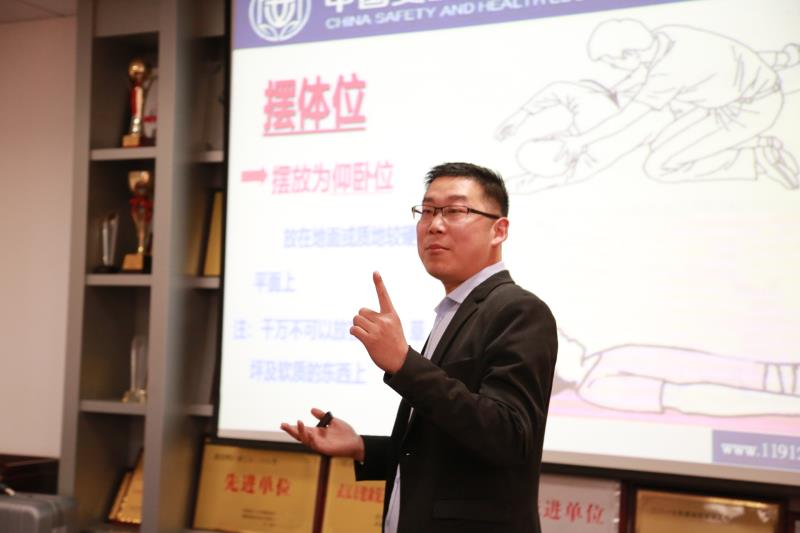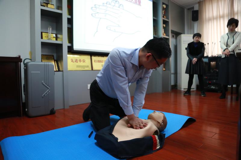 代佳鹏老师在讲解完理论知识后,利用真人模型在现场作实践操作指导。他指出,在日常生活中,急救术是一种常备技能,大家都应该熟练掌握。他还与现场人员进行了互动交流,指导大家做一些简单有效的动作,科普非菌性骨骼疾病的预防和治疗,学会缓解肩周炎、颈椎病、腰椎间盘突出等慢性病的简单方法,并利用“模拟针灸”工具在现场对两位老师进行了肩部舒络和提穴。他强调,在平时的生活工作中,一定要注意自己的身体状况,要有好的保险和预防意识。