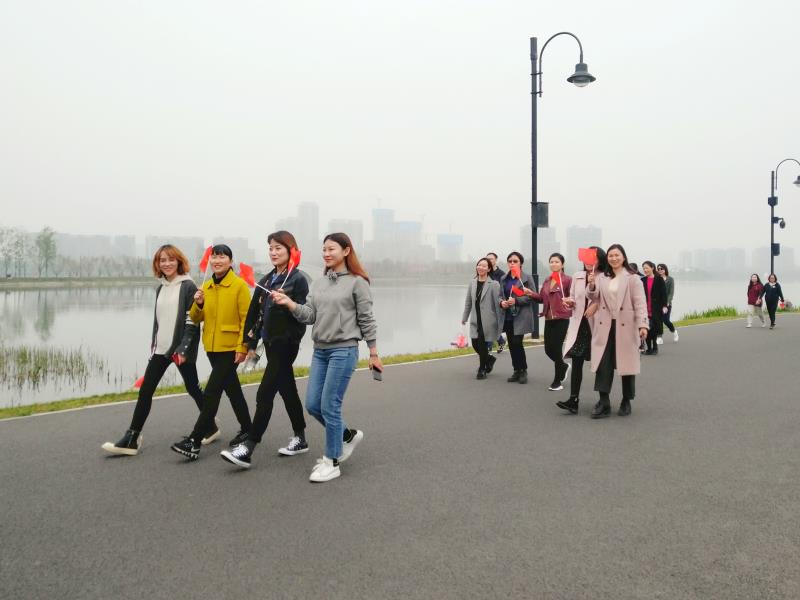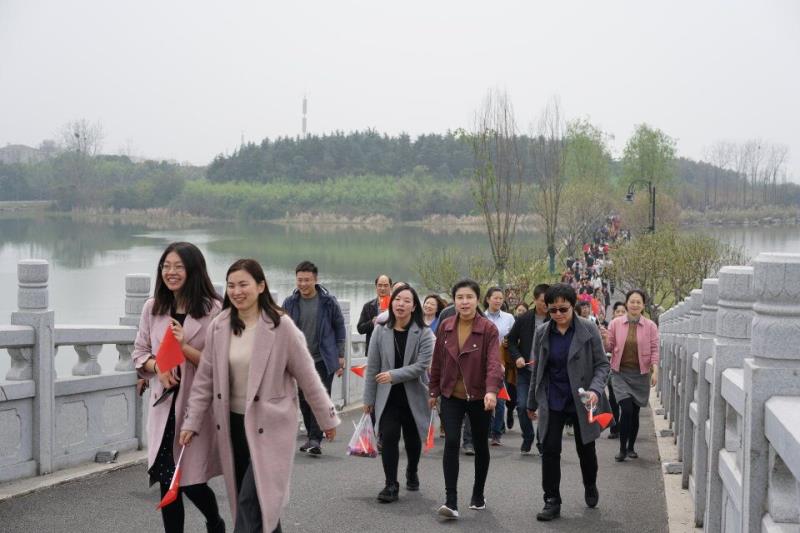 当天中午12点半,院领导带领教职员工人手一面鲜红的小国旗,从学院南二门出发,途经叶家湾、桃花岛、璀璨岛,全程5公里。在健步的过程中,学院军运会志愿者在现场向教职员工介绍军运会情况,讲解军运会小知识,营造全民健身共迎军运会的良好氛围。大家结伴而行,互相帮助,互相鼓励,在工作之余陶冶了情操,锻炼了身体,增强了“绿色、低碳、环保”的意识。