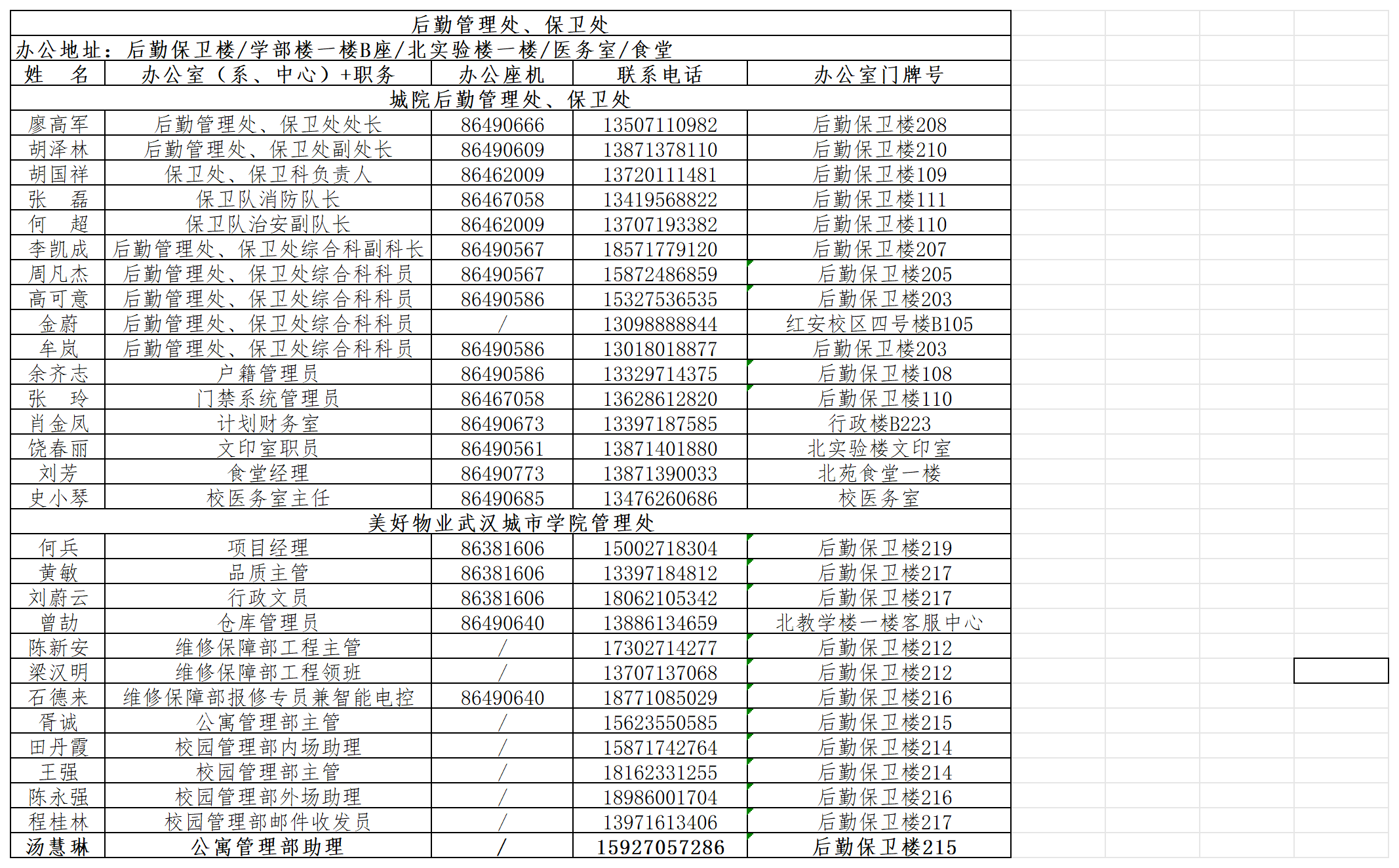 廖高军主持全面工作,对接地产公司、物业公司、商务部、食堂、医务室及学校相关部门。