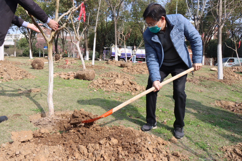 新闻网讯(记者袁晚露 郭香池)阳春三月春风暖,植树护绿正当时。3月10日上午,党委书记王军、党委副书记肖军等校领导与几十名师生在学校南门开展义务植树活动,在原有良好校园生态环境的基础上继续建设绿色校园。