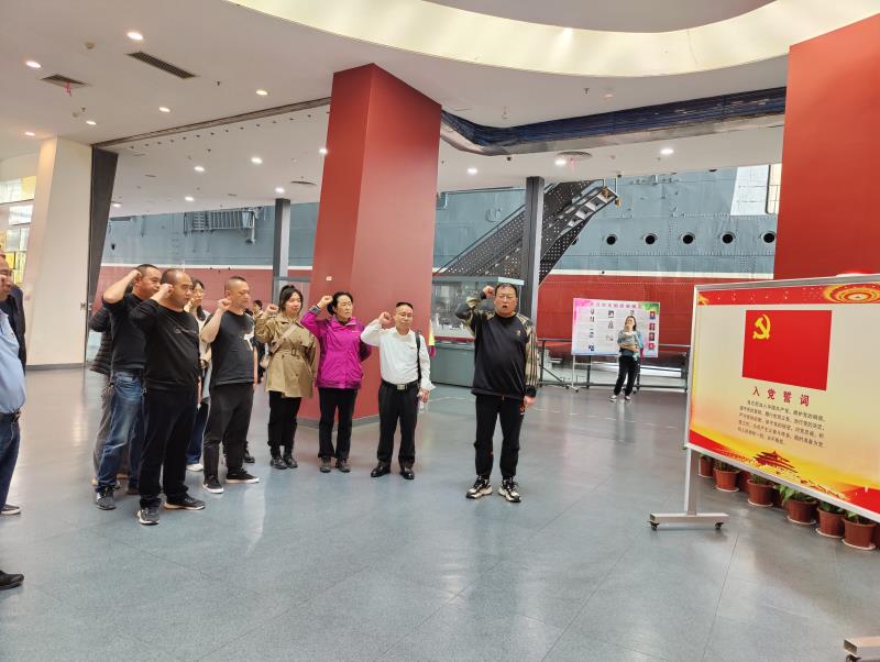 到达中山舰博物馆后,曾书记首先带领支部全体党员登上了中山舰纪念碑,缅怀了为中山舰壮烈牺牲的25名革命先烈,并带领全体党员重温入党誓词。