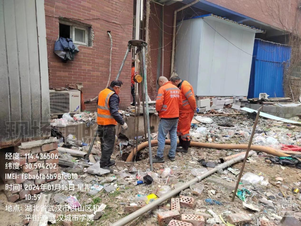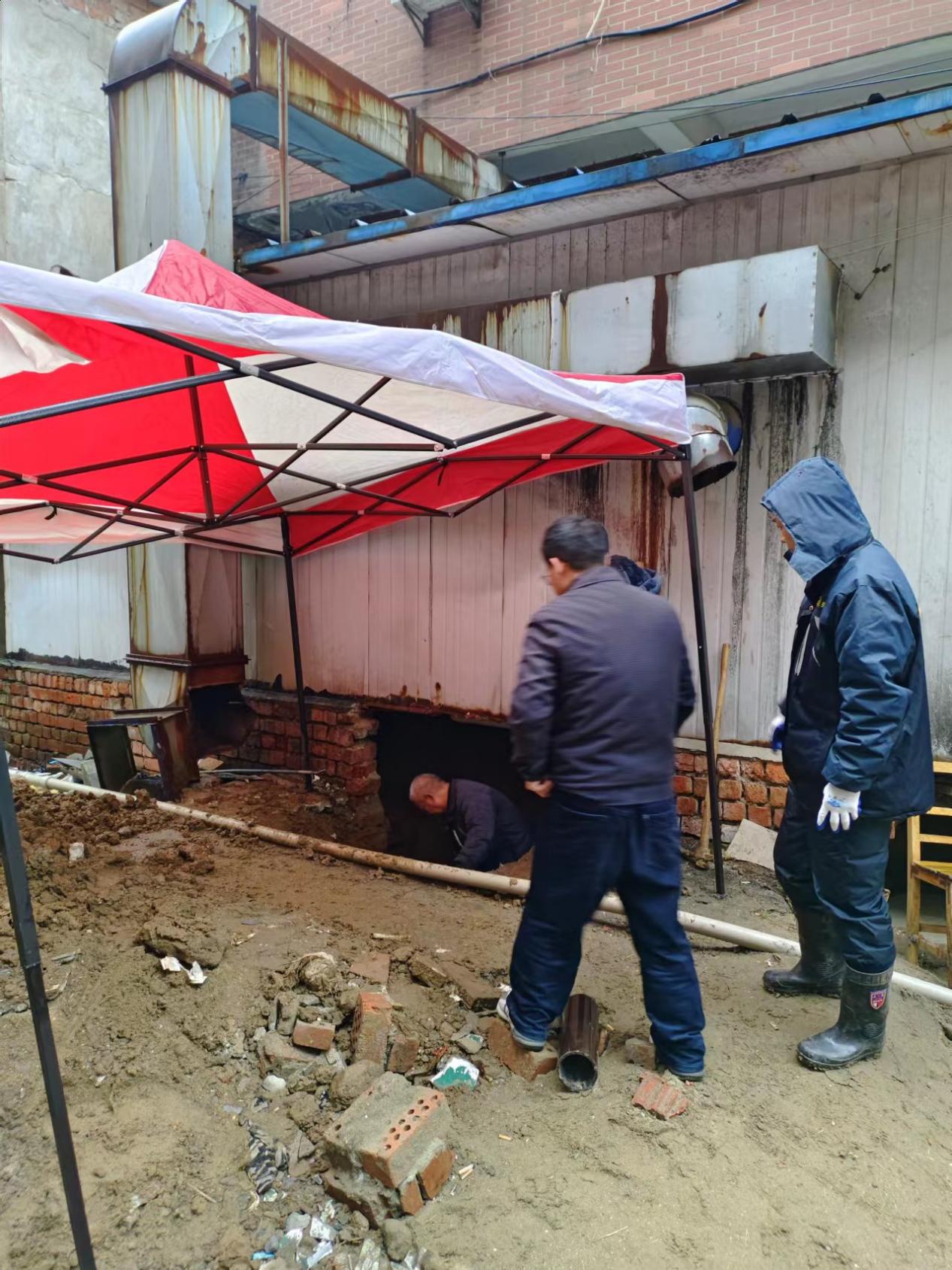 学院及后勤领导现场查看北二B化粪池堵塞问题。