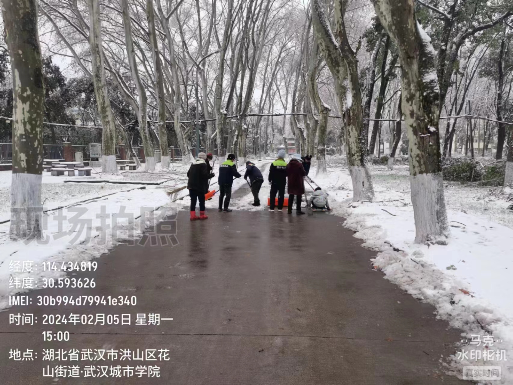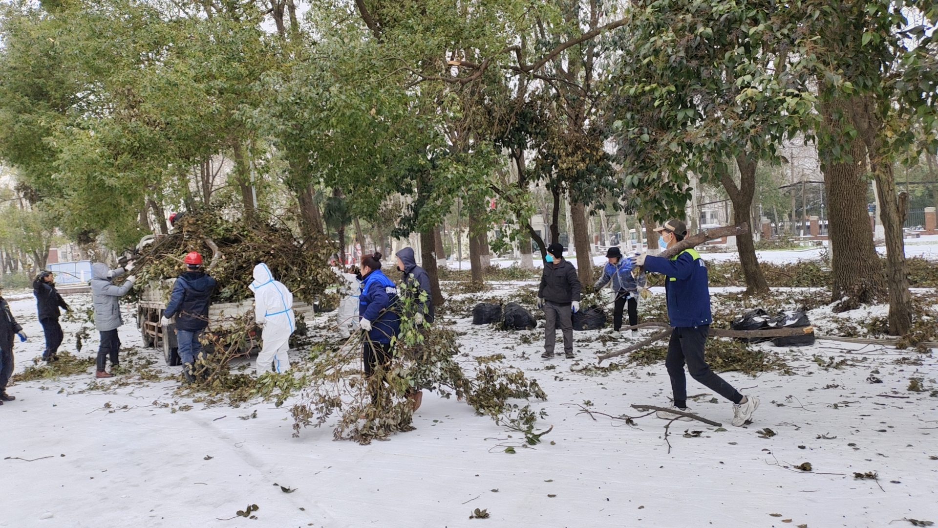 (通讯员:李凯成)寒假期间,前后两次出现罕见低温冻雨、降雪极端天气,后勤密切关注气象变化,并及时发布公告和工作提示,及时分析冰雪灾害天气对校园安全的影响,研究制定针对性防范和应急处置措施,消除隐患,确保校园安全。面对困难,积极应对防冻抗灾。因极端天气,校园道路结冰,大量树木被积冰压弯折断,给校园道路交通出行带来诸多不便,也对部分校园设施造成损坏。为消除校内交通道路安全隐患,组织物业员工,铲雪除冰,清理折断树枝,并在主要道路及楼梯等位置铺设草垫、防滑垫,保障道路畅通、出行安全。