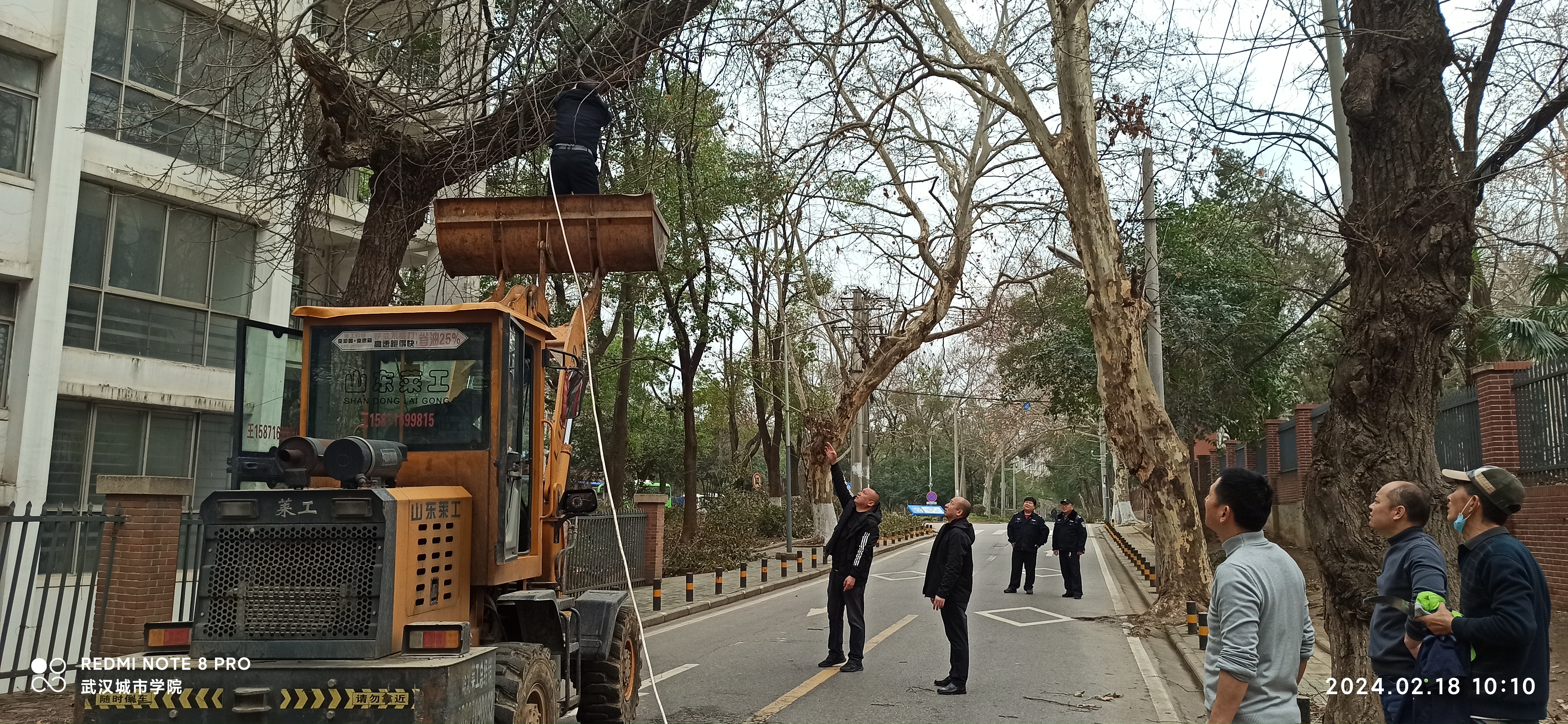 根据公司安排,绿化公司组织2台吊车修剪校园树木和3部农用车转运树干和树枝,物业公司积极组织人员协助做好断枝、树叶清理,杜绝次生灾害安全隐患。