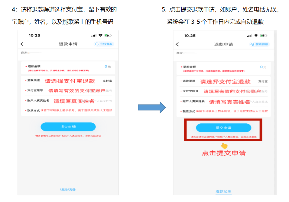 备注:1、日常不支持退费,每年毕业季期间6月份会开启申请退费程序,具体时间另行通知,请大家保留账户,在规定时间内退费。