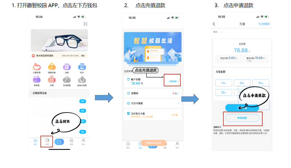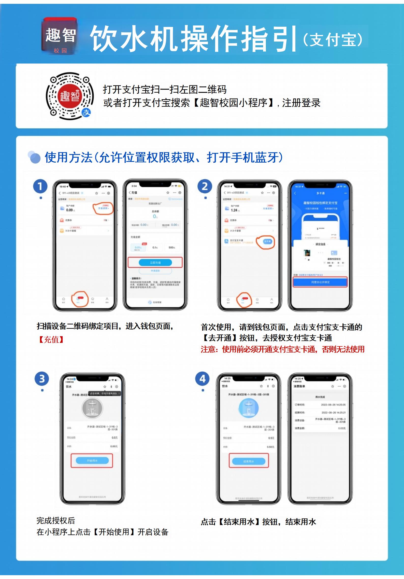 2、因红安校区与东湖校区开水系统及充值账户不同,需将原账户先退费后注销(顺利不能颠倒,否则费用无法退回),才能在东湖校区通过支付宝搜索“趣智校园”充值打开水。