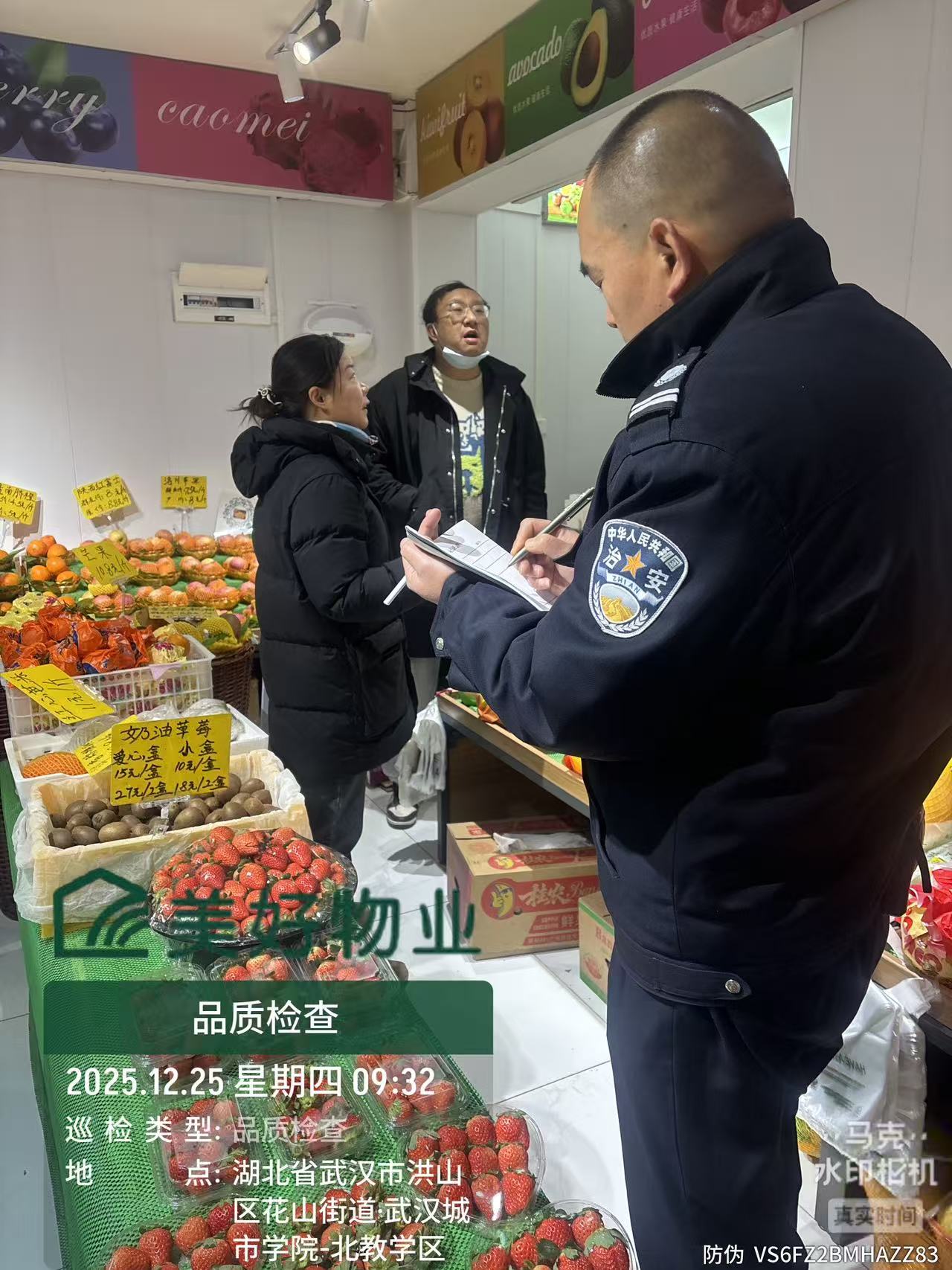 2025年12月25日,后勤物业节前对校内商铺进行安全隐患排查。