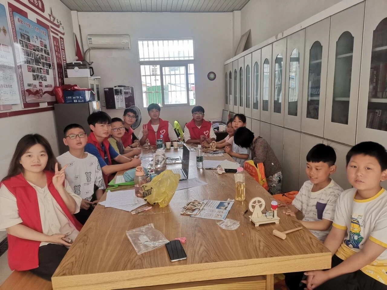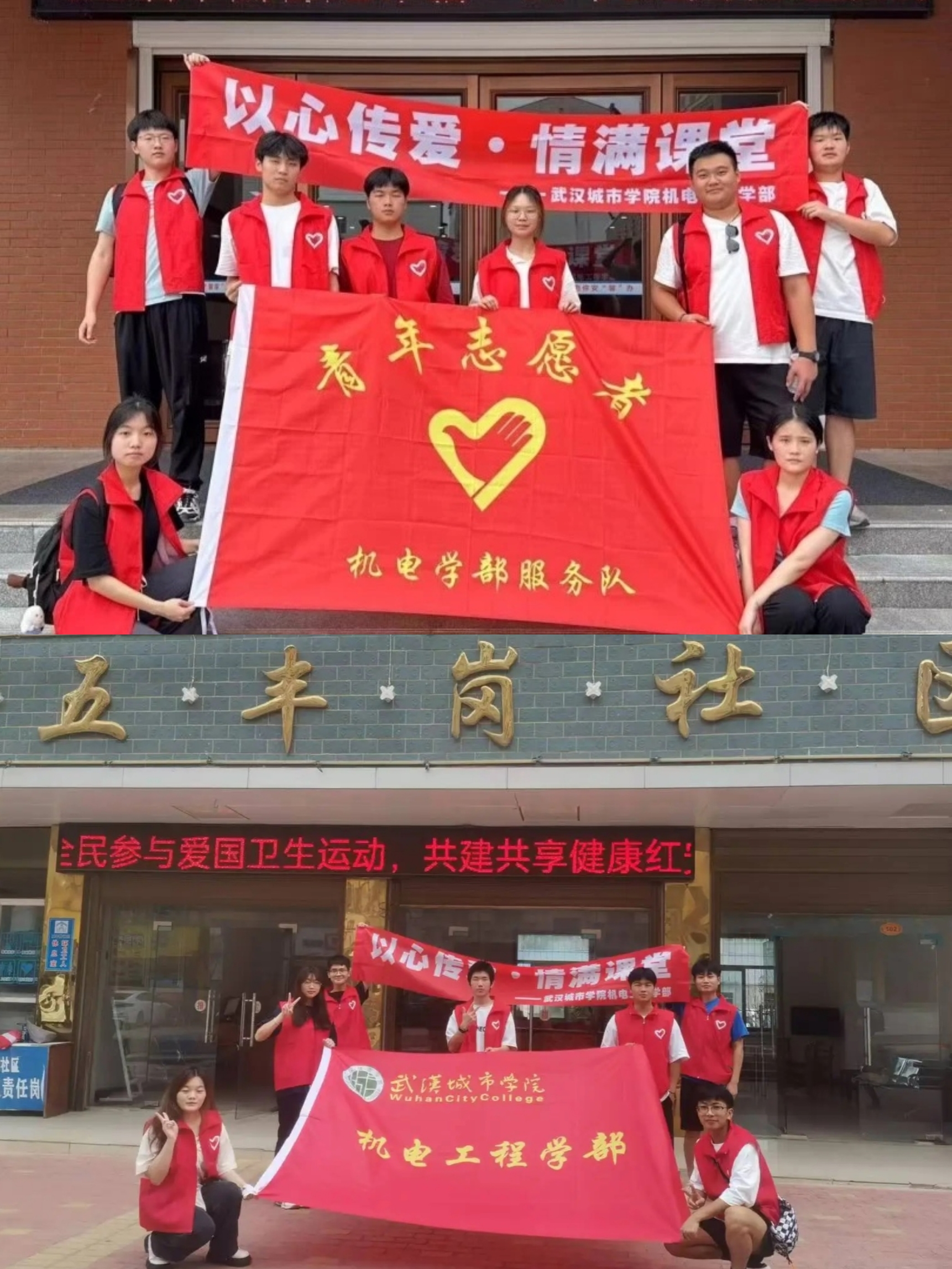 5月12日,武汉城市学院机电工程学部志愿者团队,在红安县城关镇金沙社区与杏花乡五丰岗社区开展第一次爱心课堂活动。