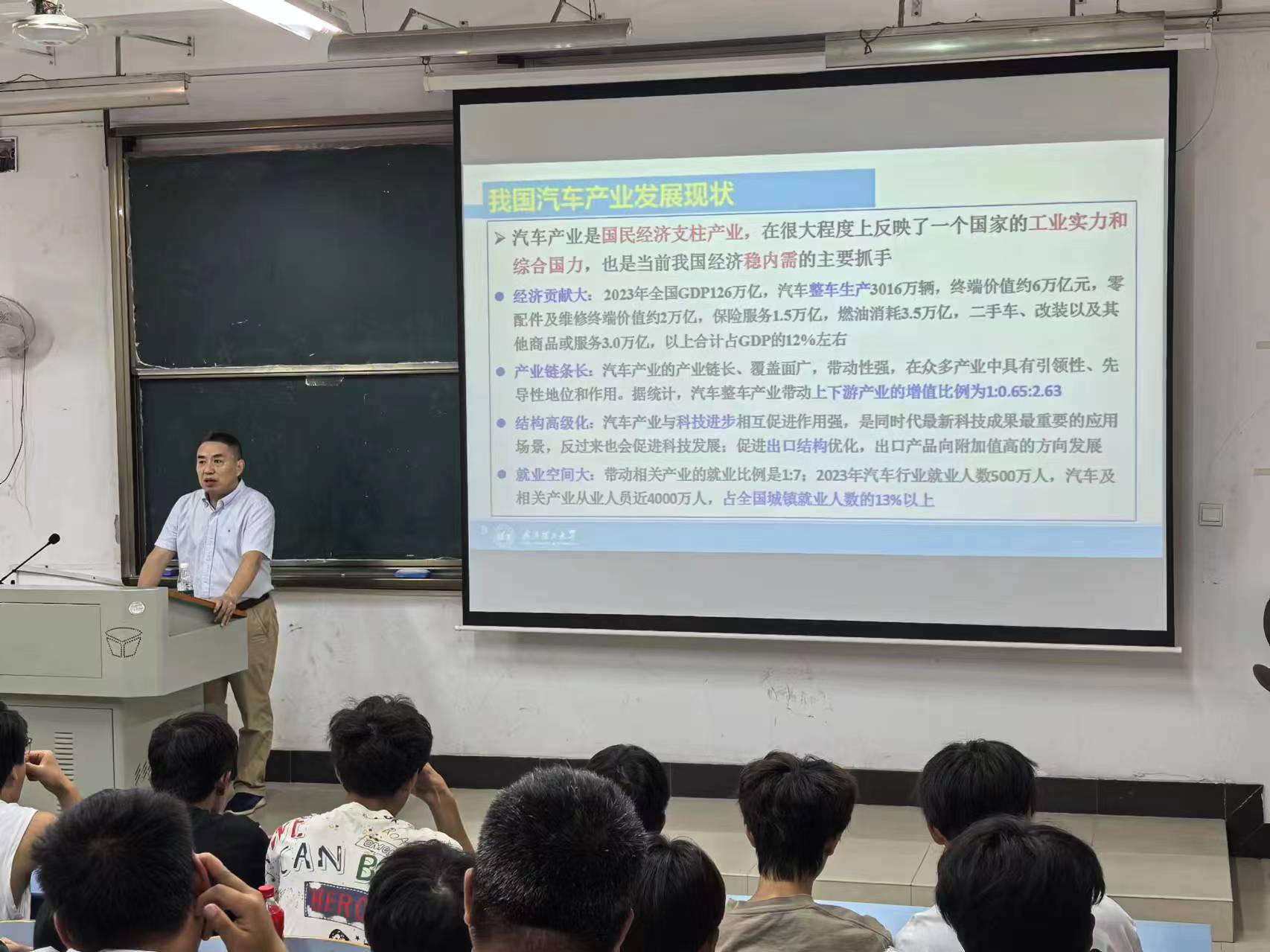 新闻网讯(通讯员魏雪)9月29日上午,2024级新能源汽车专业入学教育讲座在6102教室隆重举行。本次讲座特邀新能源汽车领域知名教授张国方作为主讲老师,他从汽车发展史切入,详细讲解了新能源汽车最新发展情况,为刚刚踏入大学校门的学子们上好了第一课。